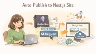 Next.js ブログ構築シリーズ第12回。Windows の WSL と rsync を使い、 Obsidian で書いた記事と画像をバッチファイルのダブルクリック1つで Next.js ブログに自動公開する完全な運用フローを構築する手順を、非エンジニア向けに解説します。