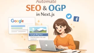 Next.js ブログ構築シリーズ第9回。 `generateMetadata` 関数を使い、 Markdown のフロントマターから `description` と `ogImage` を自動で読み込んで、記事ごとに SEO タグと OGP タグを設定する仕組みを非エンジニア向けに解説します。