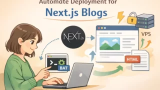 Next.js ブログ構築シリーズ第10回。静的書き出し(SSG)で本番公開する設定から、 WSL と rsync を使った差分転送、バッチファイルのダブルクリック1回で Obsidian の記事を自動デプロイできる仕組みの構築まで、非エンジニア向けに解説します。